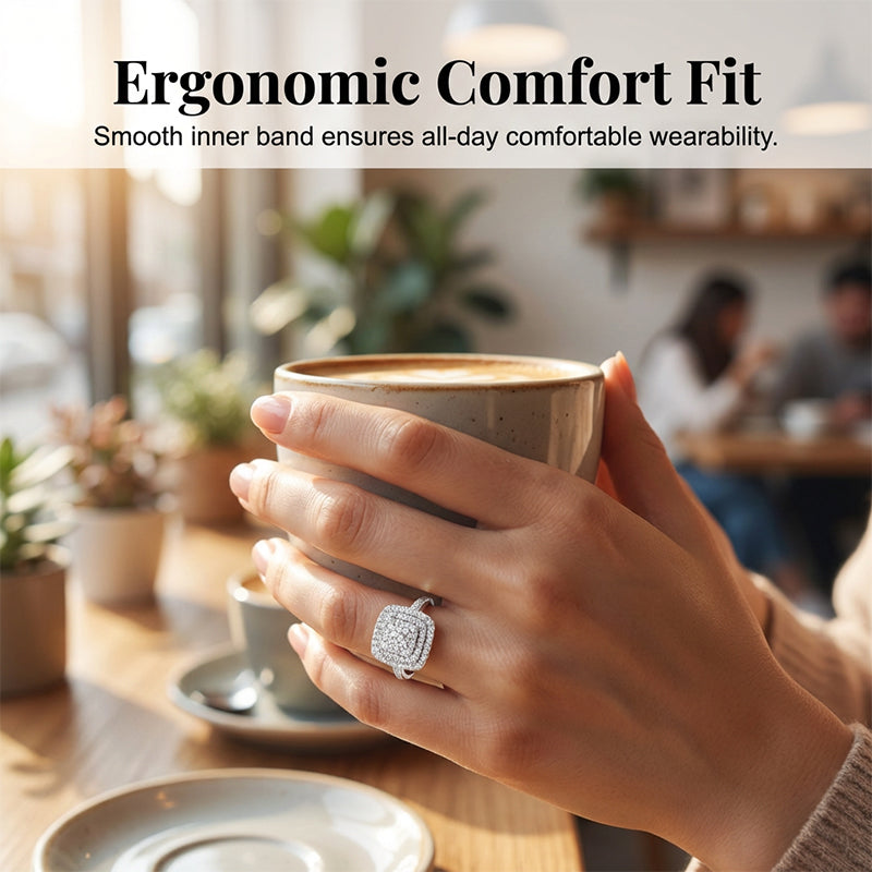 đ 70% DE RĂDUCTION ! đ Bague CarrĂ©e Double Halo Brillante pour Femme â Finition Or, Micro-PavĂ© Ăclatant & Confort Ergonomique (Tailles 6â10) đđ